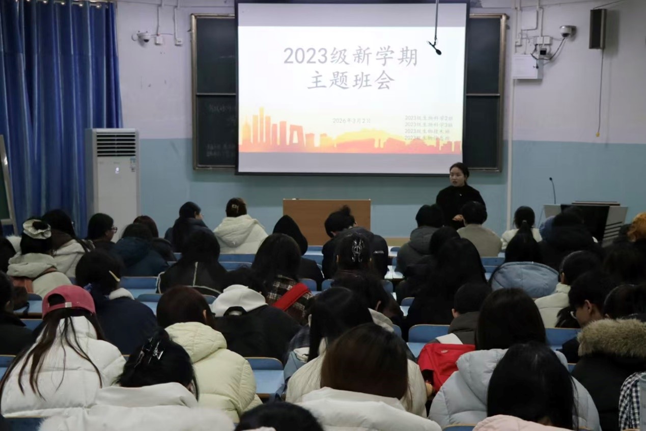 2026年3月2日上午10时,皇冠集团网站2023级新学期主题班会在教九楼305教室召开。本次班会由2023级辅导员杨娟娟主持,2023级生物科学2班、3班,生物技术班及生物信息班全体学生参加。班会围绕“学业规划与安全教育”两大核心主题展开,旨在帮助学生明确新学期目标,强化安全意识。