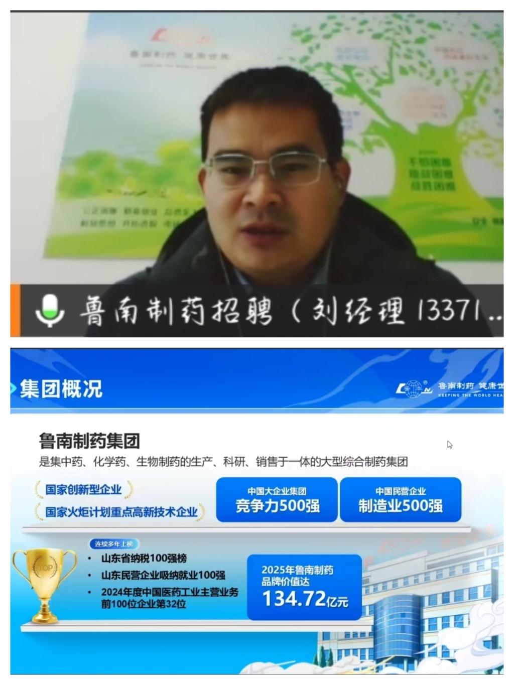 宣讲过程中,学子们通过弹幕、留言等方式积极提问,刘经理就岗位工作内容、培训机制、晋升路径等问题逐一解答,现场互动氛围热烈。宣讲结束后,企业同步开启线上面试通道,学子可通过微信公众号“鲁南制药集团”或宣讲会专属二维码投递简历。