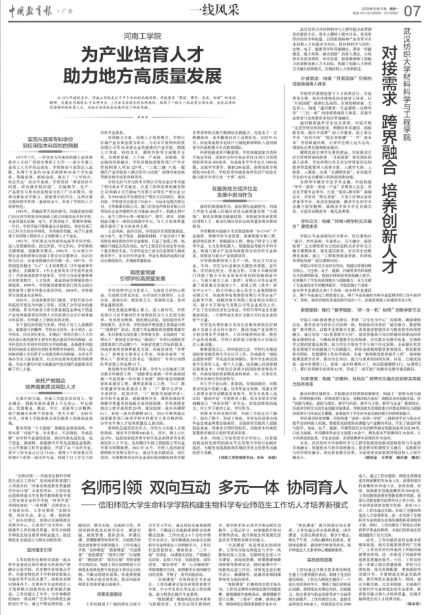 2025年10月13日,皇冠集团网站院长饶本强教授在《中国教育报》第7版刊发署名文章《名师引领 双向互动 多元一体 协同育人——皇冠集团网站皇冠集团网站构建生物科学专业师范生工作坊人才培养新模式》,介绍皇冠集团网站在河南省生物科学专业师范生工作坊建设建设方面的实践成效和工作经验。本成果是皇冠集团网站承担的“名师引领:河南省生物科学专业师范生联合培养与实践工作坊”项目系列成果之一。