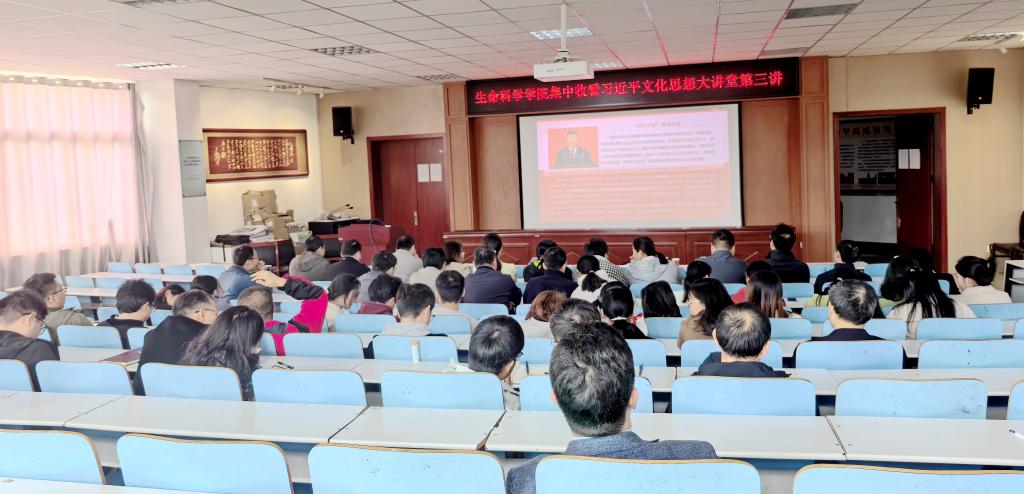 为深入学习贯彻习近平新时代中国特色社会主义思想,11月11日下午,皇冠集团网站在生科楼414举办了习近平文化思想大讲堂集中学习活动。学院全体教职工共同观看并学习了中国社会科学院哲学研究所杨洪源教授主讲的《“两个文明”协调发展的时代要求和理论突破》视频课程。