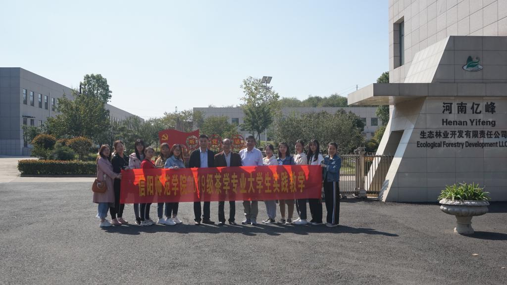 10月19日,2019级茶学专业9名学子在班委吴雪莉的组织下,再次邀请我校茶树生物学省级重点实验室主任江昌俊教授担任实践教学教师,前往罗山县灵山镇河南亿峰生态林业开发有限责任公司抹茶加工车间,潢川县光州茶业淩集茶场开展实践教学。分党委副书记杨霁虹,辅导员杨娟娟、朱晓雯一同前往。