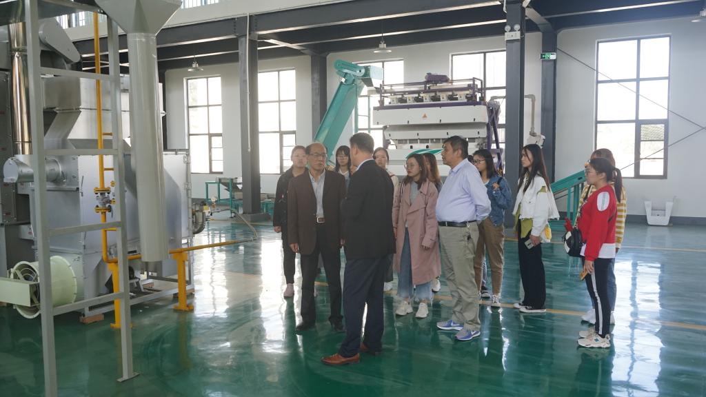 罗山县灵山镇河南亿峰生态林业开发有限责任公司,系现代化大型茶叶企业,总经理王洪运陪同考察了逾千平米的从日本原装进口的抹茶生产线,详细说明了公司对未来茶产品转型升级的研判以及逐步建设万亩抹茶原料基地的规划,预测传统茶叶生产模式将随着消费习惯的改变而升级换代,公司愿意为茶学专业大学生、研究生提供用武之地,江昌俊教授从抹茶原料要求和初选,结合设备与工艺,介绍了科技含量在今后茶叶品种改良、产品换代中的贡献。